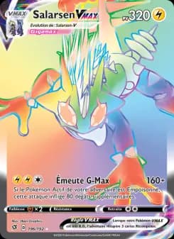 Vous possédez la carte Salarsen VMAX #196 de Clash des Rebelles ? Nous la rachetons jusqu'à 2.60€ selon son état. Notre plateforme de rachat de cartes Pokémon vous permet de vendre vos cartes rapidement et en toute sécurité. Même les cartes communes ont de la valeur, surtout si vous en possédez plusieurs. Regroupez vos cartes pour optimiser les frais d'envoi et maximiser votre gain. Recevez une offre de rachat personnalisée en 10 minutes chrono.