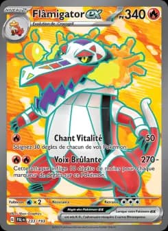 Vous possédez la carte Flâmigator-ex #258 de Évolutions à Paldea ? Nous la rachetons jusqu'à 3.25€ selon son état. Notre plateforme de rachat de cartes Pokémon vous permet de vendre vos cartes rapidement et en toute sécurité. Même les cartes communes ont de la valeur, surtout si vous en possédez plusieurs. Regroupez vos cartes pour optimiser les frais d'envoi et maximiser votre gain. Recevez une offre de rachat personnalisée en 10 minutes chrono.