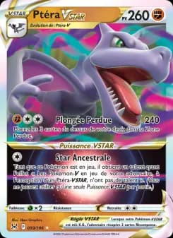 Tant que ce Pokémon est en jeu, il obtient un talent ayant l'effet " Les Pokémon-V en jeu de votre adversaire, à l'exception d'un Ptéra-VSTAR, n'ont pas de talent ". (Vous ne pouvez utiliser qu'une seule Puissance VSTAR par partie.)