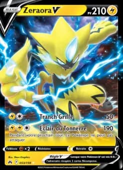 La carte Zeraora V #166 issue de Règne de Glace est très recherchée par les collectionneurs. Son prix de rachat peut atteindre 15.60€ selon l'état de votre carte. Pokéventes vous propose un service de rachat immédiat avec paiement sous 48h. Pour connaître la valeur exacte de votre Zeraora V, utilisez notre calculateur gratuit ou contactez-nous directement. Nous achetons vos cartes Pokémon au meilleur prix, que vous vendiez une seule carte ou une collection complète.
