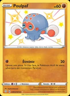 Vous possédez la carte Poulpaf #SV072 de Destinées Radieuses ? Nous la rachetons jusqu'à 0.78€ selon son état. Notre plateforme de rachat de cartes Pokémon vous permet de vendre vos cartes rapidement et en toute sécurité. Même les cartes communes ont de la valeur, surtout si vous en possédez plusieurs. Regroupez vos cartes pour optimiser les frais d'envoi et maximiser votre gain. Recevez une offre de rachat personnalisée en 10 minutes chrono.