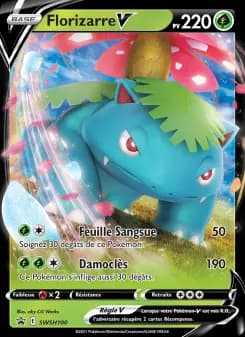 Vous possédez la carte Florizarre V #SWSH100 de Promo SWSH ? Nous la rachetons jusqu'à 0.00€ selon son état. Notre plateforme de rachat de cartes Pokémon vous permet de vendre vos cartes rapidement et en toute sécurité. Même les cartes communes ont de la valeur, surtout si vous en possédez plusieurs. Regroupez vos cartes pour optimiser les frais d'envoi et maximiser votre gain. Recevez une offre de rachat personnalisée en 10 minutes chrono.
